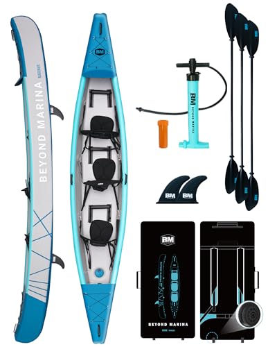 Das BEYOND MARINA aufblasbare Kajak für 3 Personen verfügt über eine Dreikammer-Konstruktion, die es deutlich robuster und langlebiger macht als herkömmliche aufblasbare Kajaks. Durch das vollständige Drop-Stitch-Design sind Boden und Seitenkammern besonders widerstandsfähig.