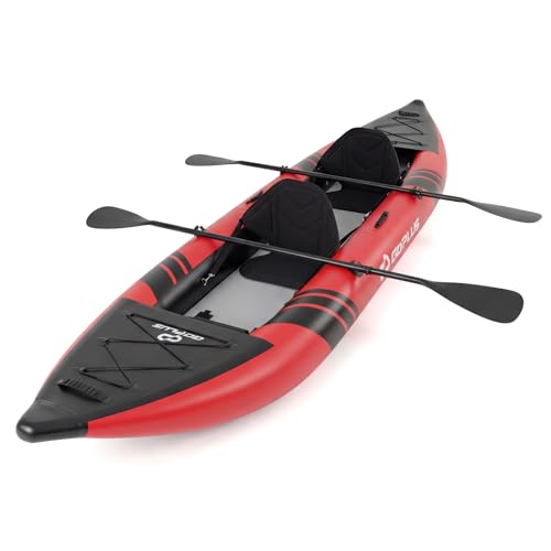 COSTWAY Kajak aufblasbar 2 Personen, aufblasbares Kanu mit Aluminiumrudern, gepolstertem Eva-Sitz, Handpumpe und Reparaturset, Schlauchboot mit Tragetasche, 230 kg Gewichtskapazität (Rot)